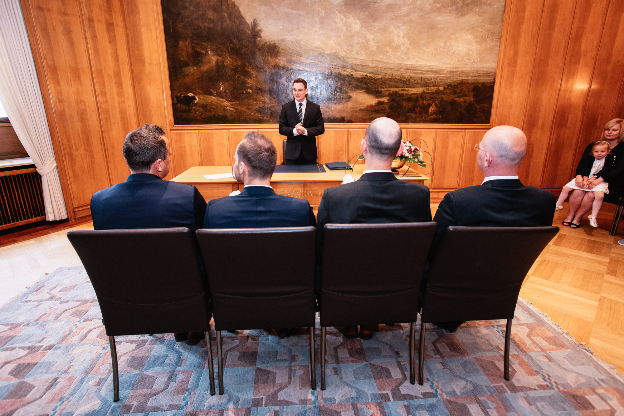 Im Standesamt war bereits die Familie versammelt und die ersten Tränchen wurden vergossen. Die Trauung war sehr emotional und berührend… Auf dem Römer wurde dann erstmal kräftig Sekt ausgeschenkt und Glückwünsche verteilt bevor es zu einer kleinen Stärkung in ein nahegelenes Restaurant ging. Weil Max und Manuel großzügig Zeit eingeplant hatten, nutzen wir den hübschen Blick auf die Frankfurter Skyline für Portraits bevor es dann zur Feierlocation zurück nach Gießen ging. Es wurde so viel gelacht, getanzt und gefeiert, es war einfach ein wunderbarer Tag! Und ich war nicht nur Fotografin an diesem Tag, sondern hatte die Ehre mittendrin als Gast dabei sein zu dürfen.